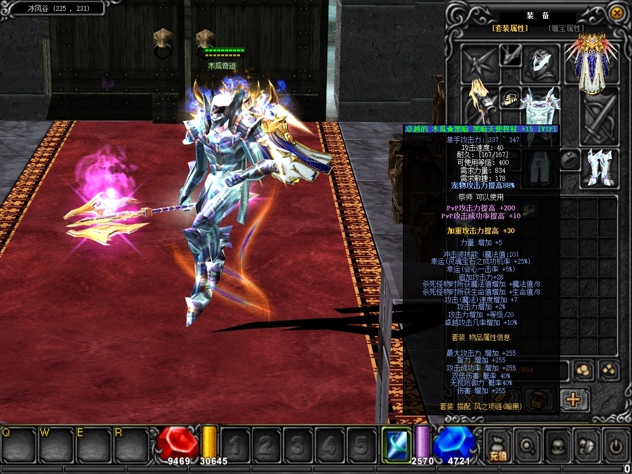 | 幻影套装 | 龙骨巨晶之剑+火之项链(龙骨)、死神之杖+雷之项链(死神)、紫焰之弓+紫晶项链(紫焰)、风影之杖+水之项链(风影)、圣尊天使权杖+风之项链(圣尊天使) | 1000元宝 |